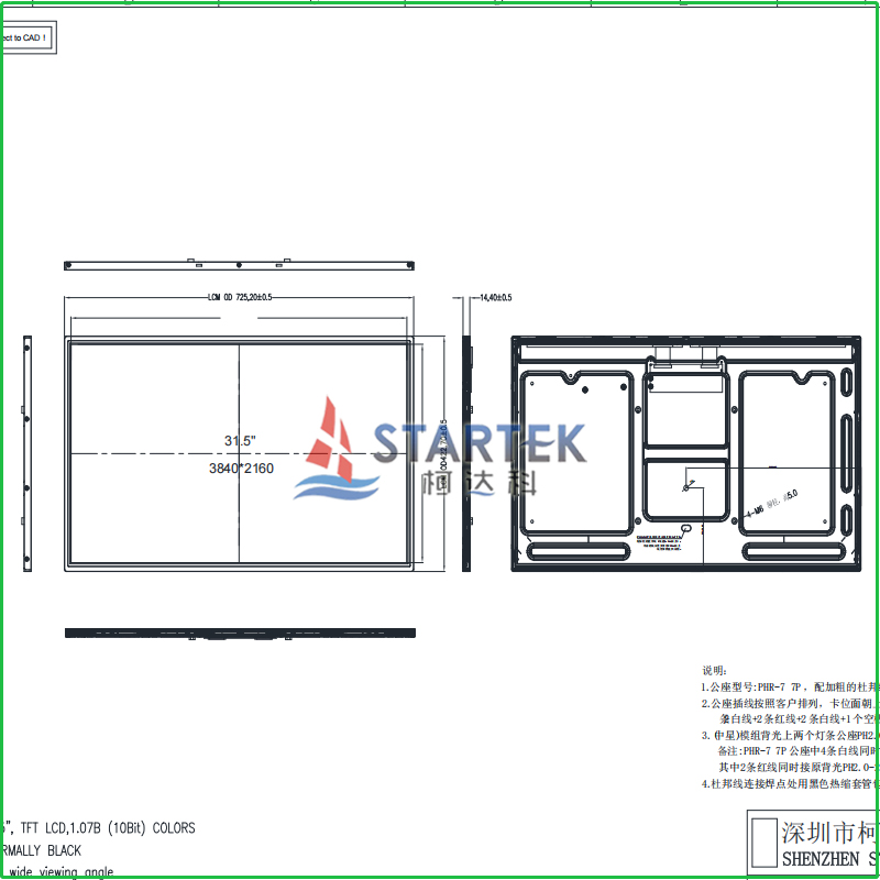 • 31.5 inch 3840x2160 UHD TFT LCD